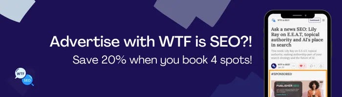 Get your company in front of more than 13,000 writers, editors and digital marketers working in news and publishing. Sponsor the WTF is SEO? newsletter!