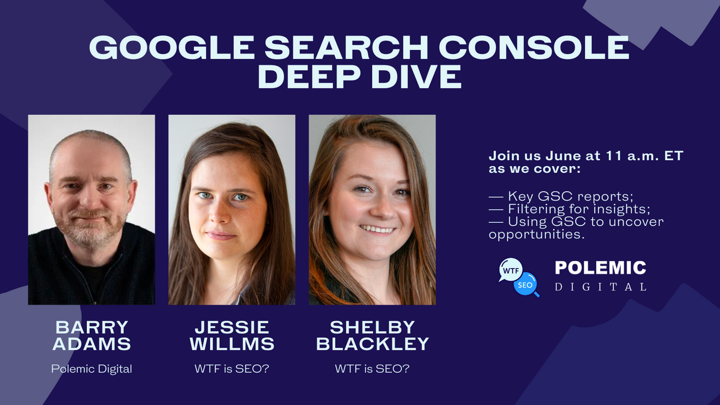 We are thrilled to invite you to a special masterclass call on Google Search Console, hosted by Jessie and Shelby from WTF is SEO? and