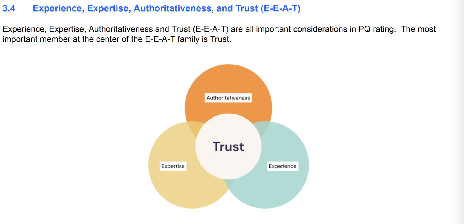 “Untrustworthy pages have low E.E.A.T no matter how Experienced, Expert or Authoritative they may seem,” the guidelines say. In other words: if a page lacks trustworthiness for any reason, it is considered to have low E.E.A.T.